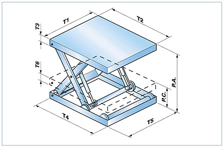 平臺的尺寸 上側T1 =臺寬T2 =臺長T3 =框架的高度 下側T4 =臺寬T5 =臺長T6 =框架的高度打開P.A. =打開長度閉合PC.=閉合長度